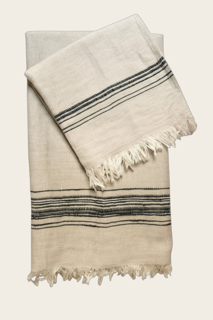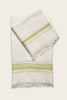 The Hera hand towel combines the powerful absorbency and durability of linen with the softness of cotton. Delicate stripes, eyelash fringe, and understated colors bring together the minimal-chic design. Available in small and large sizes, as well as sets.