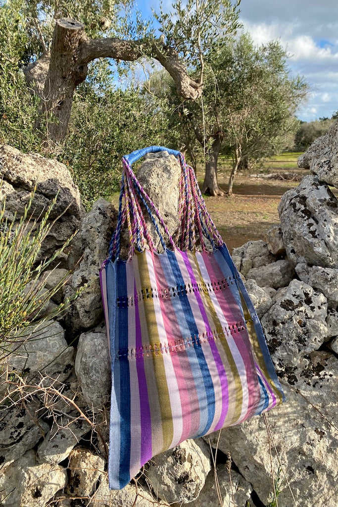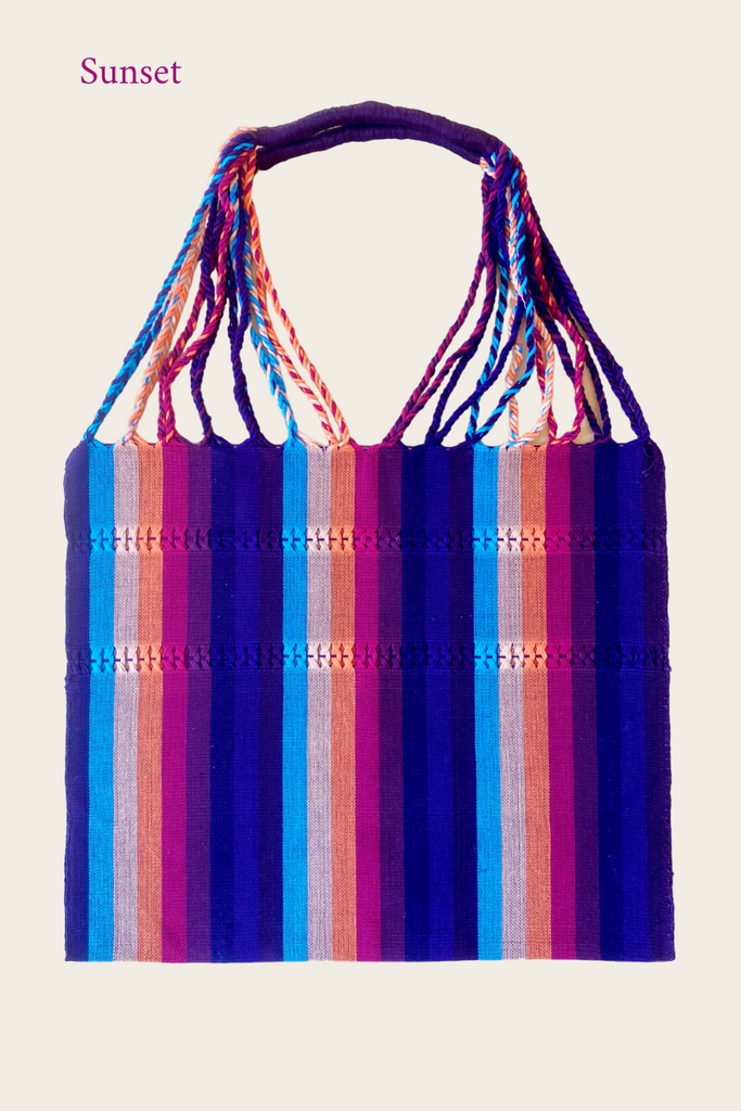 We first came across these vibrant striped tote bags in a street market in Oaxaca. They are a typical craft of Chiapas, Mexico, handwoven on traditional back strap looms. We have them woven in small batches in styles that are exclusive to Thalassa Home. Their size makes them ideal for daily use, shopping, beach trips or just adding color to your outfit!