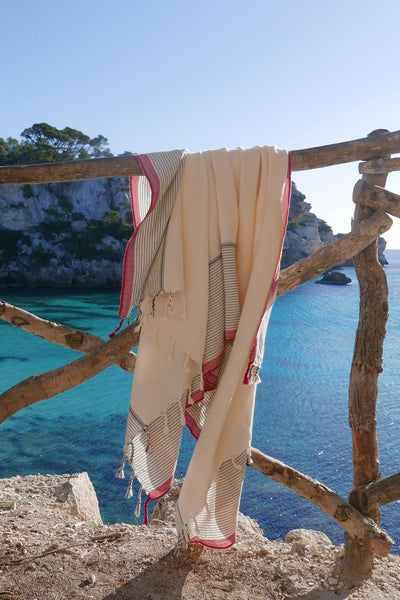 Nuestras toallas han sido confeccionadas al 100% con algodón turco cultivado en la región del Egeo y tejidas a mano por artesanos locales. Representan la continuación en la modernidad del famoso legado textil de Turquía. Desde las toallas de playa más ligeras, hasta las de peso mediano y pesado, estos versátiles textiles también se pueden utilizar como chales, centros de mesa y mantas.