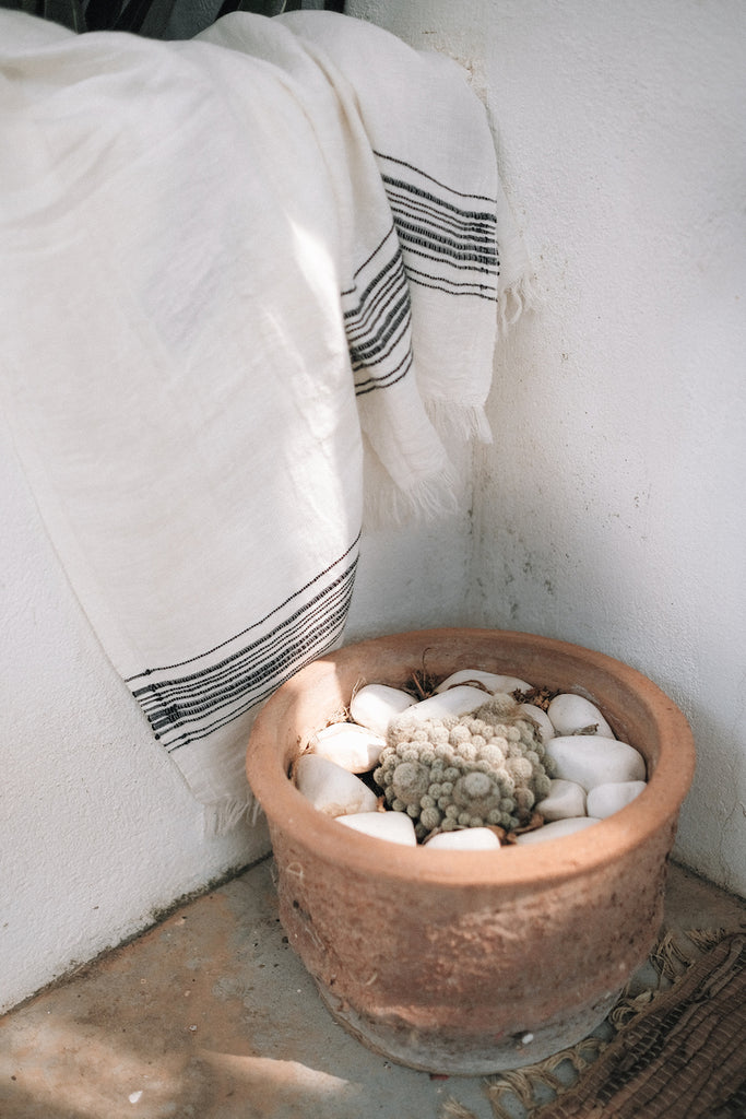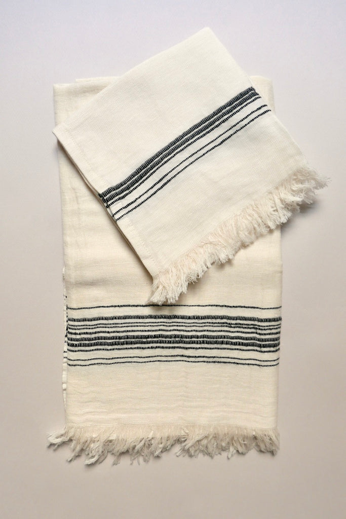 Il telo da bagno Hera combina l'assorbenza e durevolezza di lino e la morbidezza di cotone. Strisce delicate, frangia morbida e colori sottile si uniscono per creare il design minimal-chic. Disponibile singolarmente o in set con asciugamano grande coordinato a prezzo scontato.