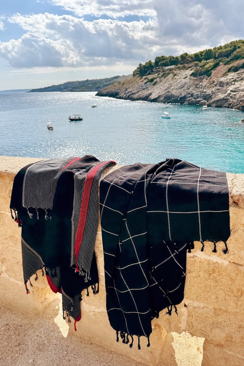 Handwoven on traditional wooden looms from 100% cotton, the Salento towel is the expression of our passion for simple, clean design. Versatility, practicality and artisanal craftsmanship are interwoven in an essential textile for bath or beach.
